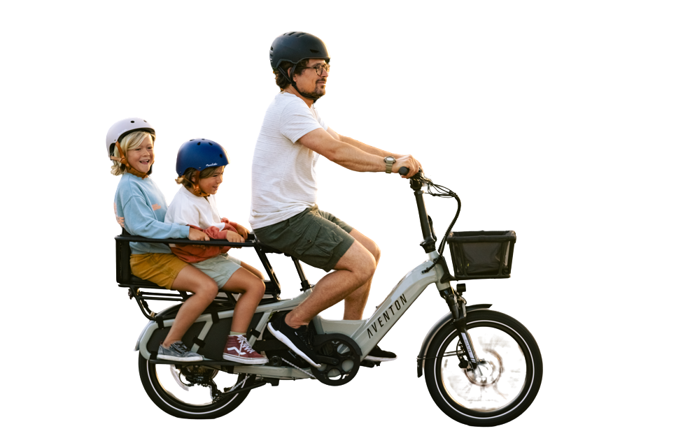 The brand-new 2025 Aventon Abound is Aventon’s first-ever cargo e-bike, designed for ultimate versatility. Its step-through frame makes loading up easy—whether it’s gear, groceries, or the kiddos! Powered by a 750W rear hub motor and torque sensor, the Abound delivers smooth, effortless riding. Let it do the heavy lifting with four pedal assist levels—Eco, Tour, Sport, and Turbo. Stay safe with all-new turn signals to alert others when you’re changing lanes, while the bright front headlight keeps the road ahead well-lit. With Abound, the possibilities are endless!